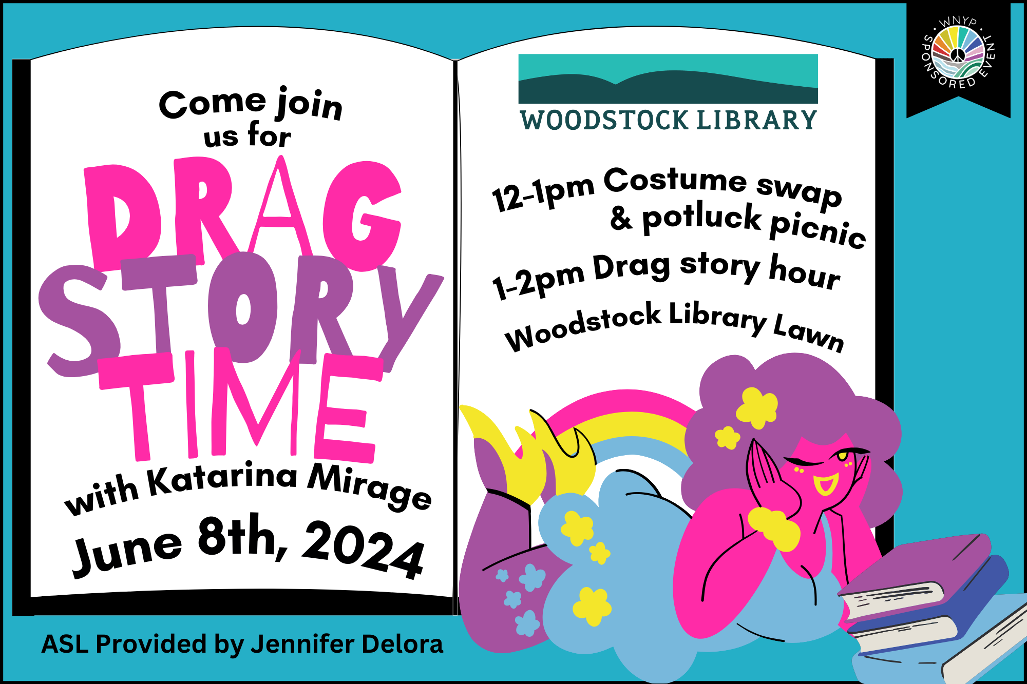 Join us at the Woodstock Library for a Kids Costume Swap and Potluck Picnic. Bring your gently used costumes to trade for a new-to-you outfit and enjoy a delicious picnic with friends & family. We will gather for a magical Drag Story with our fabulous drag performer Katarina Mirage who will read inclusive and engaging stories that celebrate diversity, kindness, and self-expression. It’s a perfect opportunity for kids to explore their imagination, build community, and experience the joy of storytelling. Come dressed in your favorite costume or find a new one at the swap – all are welcome!